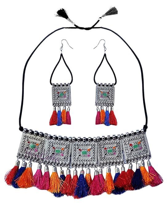 Alloy Brass Necklace Earrings Set for Women-MULTICOLOR
