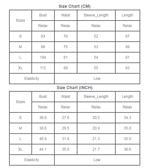 | Sizes | Bust | Waist | Sleeve_Length | Length |